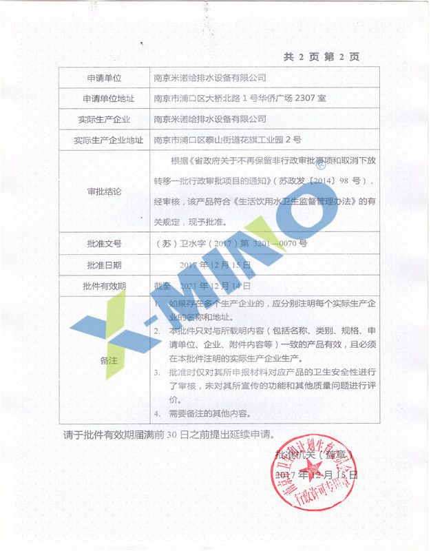 衛(wèi)生許可批件--無負(fù)壓供水