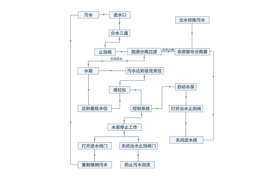 采用雜物污水分離器結(jié)構(gòu),使水泵與可纏繞型雜物不接觸,避免雜物纏繞堵塞水泵葉輪好而燒壞水泵電機(jī);具有反沖洗功能,使得設(shè)備內(nèi)不會產(chǎn)生沉淀,實現(xiàn)了無沉淀,免清掏,大大節(jié)約了設(shè)備運行和管理維護(hù)的成本。
